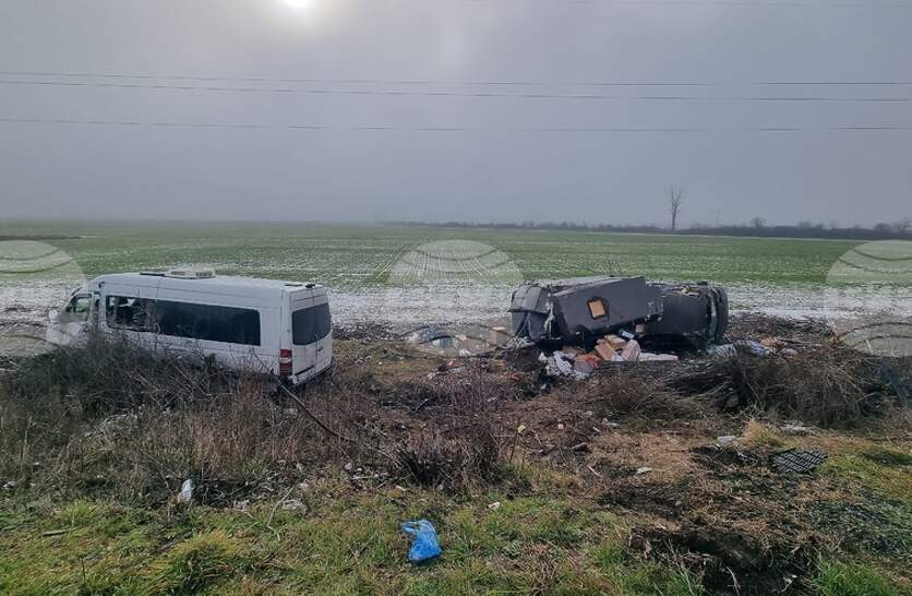 Два пътнически микробуса са катастрофирали край главния път между Казанлък и Сливен малко след Мъглиж