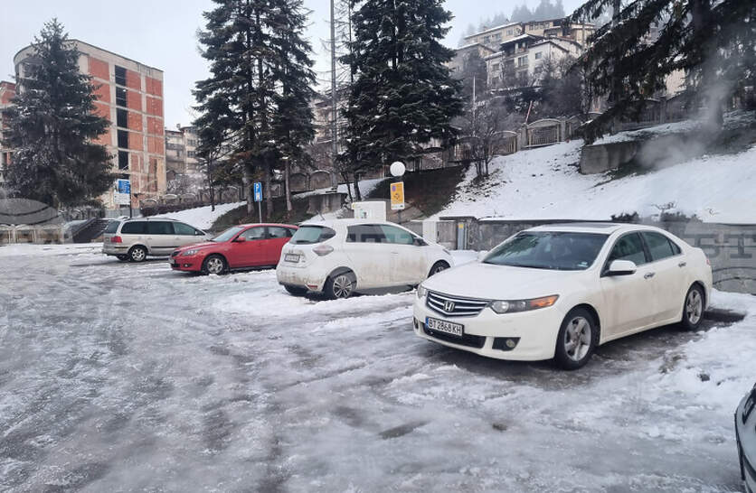 Паркингите от синята зона в центъра на Смолян втори ден са непочистени от снега, . Зоните за платено паркиране вече са заледени и без следи от опесъчаване.