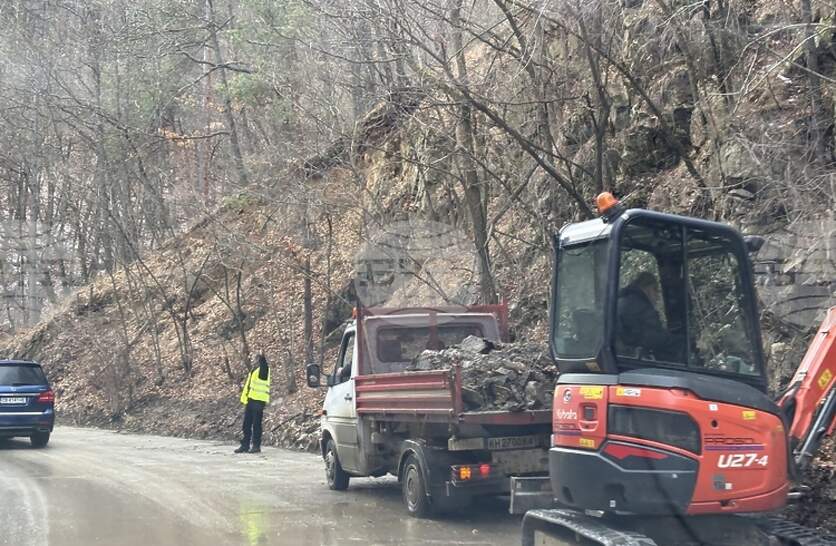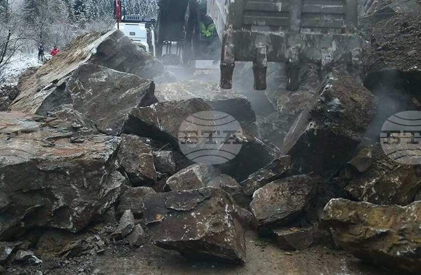 Движението по пътя за село Кремен е частично възстановено, продължава отстраняването на свлечени скални маси