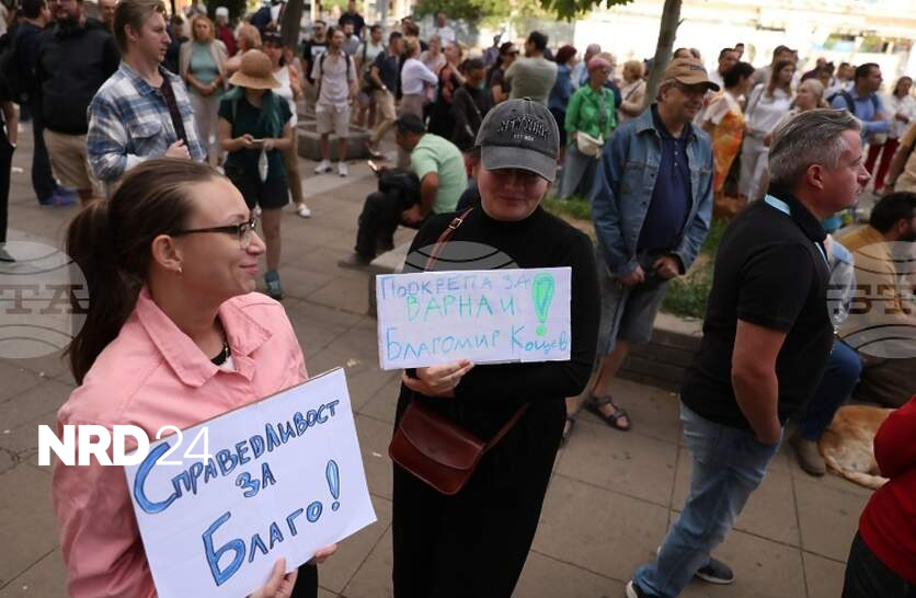 В София граждани излязоха на протест в защита на арестувания кмет на Варна Благомир КоцевПоводът е ареста на варненския кмет, заяви организаторът на протеста Камен Добрев.Около 23:30 часа на 8 юли беше връчена заповед за полицейско задържане на кмета на община Варна Благомир Коцев и той беше отведен в едно от полицейските управления, каза по-рано днес пред медиите адвокатът му Милен Ралчев.