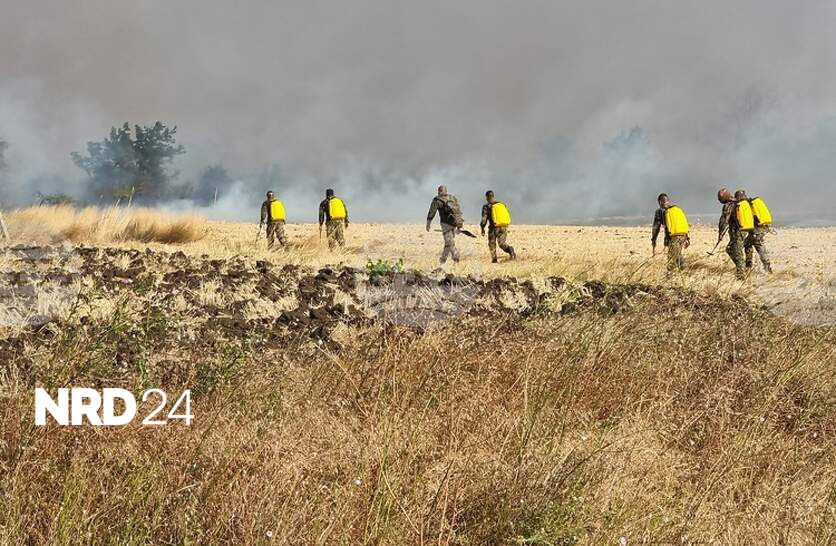 Военни от сухопътни войски се включиха в гасенето на пожара край ямболското село Козарево