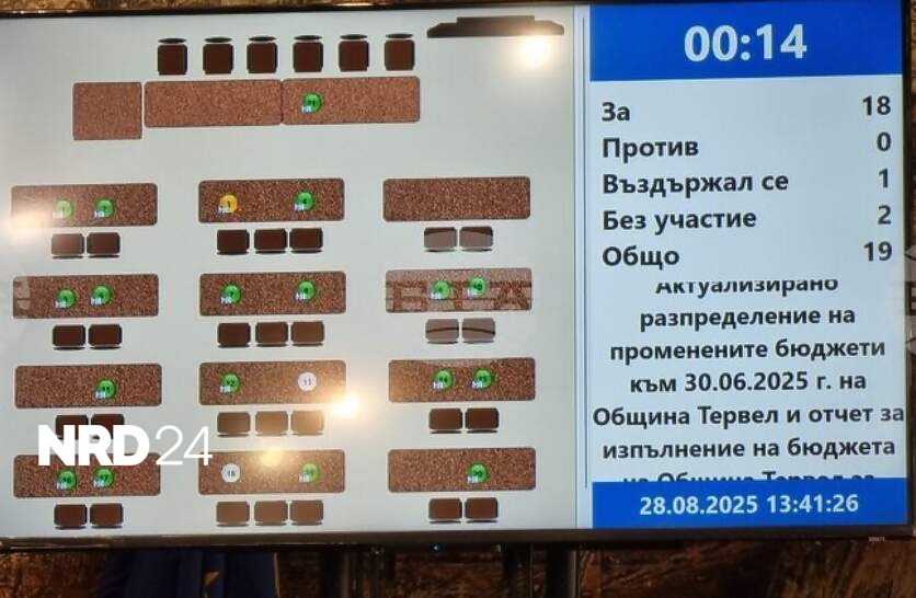 Общинските съветници в Тервел приеха отчет за изпълнението на бюджета на Общината за първата половин годинаАктуализирано разпределение на промените, които са правени в бюджета на Общината към 30 юни 2025 година приеха общинските съветници на Тервел.Докладната е внесена от кмета на Общината инж. Симеон Симеонов.