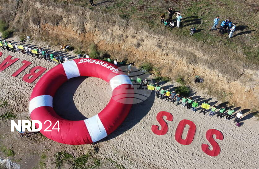 Активисти на „Грийнпийс“ разпънаха спасителен пояс на границата между България и Румъния с призив срещу добива на нефт и газАктивисти на „Грийнпийс“ от България и Румъния разпънаха голям спасителен пояс на пясъчната граница между двете държави с призив срещу добива на нефт и газ, съобщиха от неправителствената организация „Грийнпийс – България“.Активистите настояха правителствата на Румъния и България да не финансират нови проекти за добив на нефт и газ и да въведат забрани за бъдещи сондажи в морските си икономически пространства, обясниха от организацията.