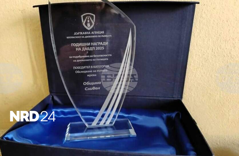 Община Сливен е удостоена с награда от Държавната агенция „Безопасност на движението по пътищата“Община Сливен получи годишната награда от Държавната агенция „Безопасност на движението по пътищата“ в категория „Обследване и документиране“ за извършено 100% обследване на над 1000 км пътна и улична мрежа, съобщиха от общинския пресцентър.Наградата бе връчена на международна конференция в София. Заместник-кметът Камен Костов благодари от името на кмета Стефан Радев и увери, че Сливен ще продължи да подобрява пътната безопасност чрез ремонти и благоустрояване.