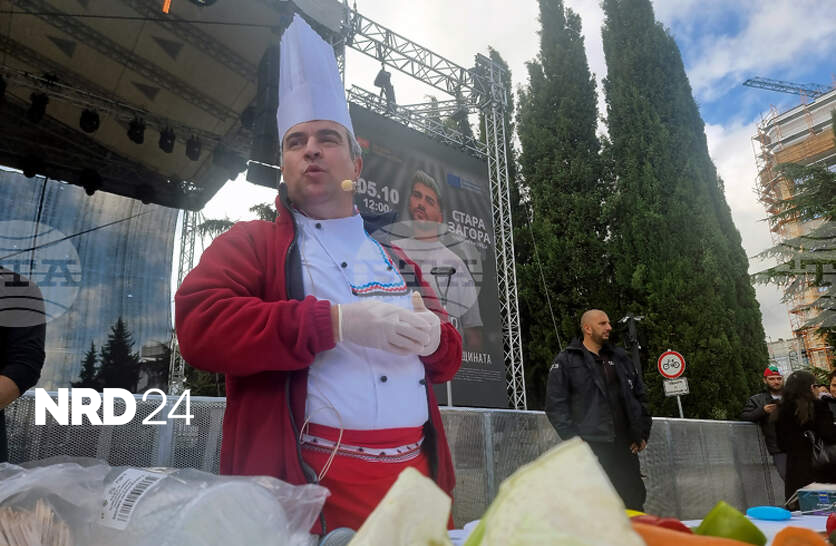 Пиле с булгур по старозагорски приготви на площада пред Община Стара Загора готвачът Иван Звездев
