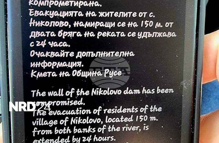 Удължават евакуацията на жители от Николово заради свлачището на язовирната дига до русенското селоЕвакуацията на жители от Николово заради свлачището на язовирната дига до русенското село се удължава с 24 часа. Това заяви кметът на Община Русе Пенчо Милков.За целта отново беше изпратено съобщение чрез системата BG-Alert.