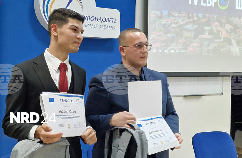 Предметни награди и грамоти за принос в популяризирането на европейските програми и инициативи сред младите хора, както и за проявени интерес и познания в сферата на европейското финансиране получиха в Областния информационен център (ОИЦ) в Шумен ученици от града. Те са носители на първа награда в категорията "Група" в Националния младежки конкурс „Аз за моята община: моят глас за европейска промяна“. Конкурсът бе организиран от Националното сдружение на общините в България (НСОРБ), в партньорство с Представителството на Европейската комисия (ЕК) в България. Ирена Стефанова, управител на ОИЦ - Шумен, поздрави Теодор Желев и Джан Молла, ученици в Профилираната приподоматематическа гимназия (ППМГ) "Нанчо Попович", които заедно с Велин Александров, ученик в същото училище, са подготвили видео проекта „ТВ Евро Шумен за обновяването на Летния театър в града“. Стефанова каза, че Молла, Желев и Александров са спечелили първата награда в конкурса на НСОРБ, който се организира за трети път. По думите са се включили ученици, студенти и работещи, а конкурсът е бил в четири категории. "Идеята беше участниците да подготвят материал, с който да представят вече реализиран проект, финансиран с европейски средства на територията на тяхното населено място и да покажат как реализирането му се е отразило на местната общност, какви са ползите от европейското финансиране", добави Стефанова и подчерта, че Молла, Желев и Александров са се справили блестящо с подготовката и участието в конкурса. Тя представи пред медиите и видеото, с което учениците заслужиха награда от конкурса, организиран от НСОРБ, получена от тях на годишната среща на общините в Албена вчера, която продължава и днес. Джан Молла обясни, че информация за конкурса учениците от ППМГ "Нанчо Попович" са получили през юли, в края на учебната година. Той поясни, че са работили около месец и половина по проекта си и благодари на Община Шумен, на ОИЦ - Шумен, на ръководителя си Виолета Маразова и на ППМГ "Нанчо Попович" за съдействието, което са получили по време на подготовката на видеото. "Заснемането с дрон на много места не е позволено, но преодоляхме този проблем", допълни той. Теодор Желев каза, че учениците стоят зад идеята за осъществения ремонт на Летния театър в Шумен. Всички проблеми избледняват на фона на успешния старт, който се даде на програмата на Летния театър, подчерта той. "В клипа видяхте кадри от участието на Орлин Горанов, на Веселин Маринов. Заснемането не беше лесно", добави той. Молла и Желев отбелязаха, че наградата от конкурса на НСОРБ ще бъде поделена между авторите на видеото и ще бъде инвестирана в кариерното им развитие. Тази година е много важна, защото сме дванадесетокласници, подчертаха те. Както съобщихме, Община Шумен призова през август т.г. младежите да се включат със своите истории в конкурса на НСОРБ. Годишна среща на местните власти, организирана от НСОРБ, започна на 12 октомври в курортен комплекс Албена. Премиерът Росен Желязков откри Годишната среща на местните власти.