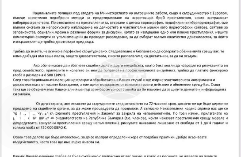 В интернет се разпространяват фалшиви имейли със заглавие „Съдебни производства“. Измамниците се представят за служители на МВР и Европол и използват логата на институциите, отличителния знак на полицията и подписа на бивш директор на Главна дирекция "Национална полиция (ГДНП), съобщиха от МВР на официалната си страница във фейсбук. В имейлите се твърди, че срещу получателя са повдигнати обвинения в киберпрестъпления, включително педофилия и детска порнография. Настоява се за плащане на глоба от 8500 евро, за да бъде „прекратено делото“ и изтрита чувствителна информация. Измамниците твърдят, че при отказ за сътрудничество получателят ще бъде осъден на лишаване от свобода и глоба до 420 хил. евро. В допълнение се отправят заплахи, че делото ще бъде публично разгласено „за назидание“. Припомняме, че през лятото от Главна дирекция "Борба с организираната престъпност" предупредиха за финансова измама, при която се злоупотребява с името на службата и измамниците заблуждават хора по телефона за това, че съдействат за предотвратяване на престъпление и опит за източване на банковите им сметки. В същото време, целта на процеса е тегленето на кредит или превод на пари в полза на измамниците.