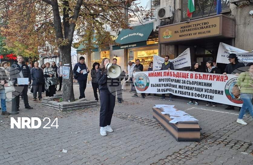 Млади лекари отново протестират с искане за повишаване на заплатите. Протестът е пред Министерството на здравеопазването и е под надслов „Погребението на едно бъдеще“. Протестиращите настояват стартовата заплата на лекар без специалност да бъде 150% от средната работна заплата в страната, увеличаване на заплащането за нощен труд и за допълнителна квалификация, както и за прозрачност в съчетаването на специализации. Нямаме добър диалог с Министерството на здравеопазването, въпреки че оттам твърдят друго, каза пред журналисти Василена Димитрова, член на инициативния комитет на „Бъдеще в България“ – организатори на протеста. Никой не ни чува и не откликва на молбите ни, допълни тя. По думите й промените, предложени от здравното министерство в наредбата за специализациите, са нереални. Димитрова посочи, че сред младите лекари се повишава нагласата за напускане на държавата. Крайно време е да се вземат мерки, защото не ни чака нищо добро - нито нас като лекари, нито като общество, каза Пламен Китов, стажант лекар. В 19:00 часа протестиращите ще се отправят с шествие към Орлов мост.