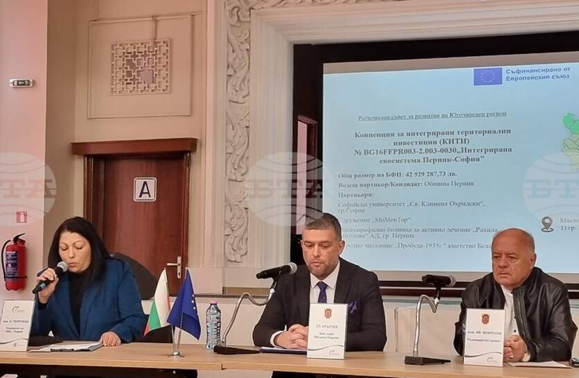 В Перник бе обсъдена публично концепцията за интегрирани териториални инвестиции (КИТИ) „Интегрирана екосистема Перник – София“. В срещата участваха представители на бизнеса, образователни институции и граждани. Обсъждането е организирано съвместно от Областния информационен център в Перник и общинската администрация. „КИТИ представлява нов стратегически подход към регионалното развитие, насочен към съвместното решаване на териториални предизвикателства чрез партньорство, координация и интегрирано планиране. Днешната среща има за цел не само да представи основните елементи на концепцията, но и да отговори на въпроси и предложения от участниците“, заяви управителят на Областния информационен център в Перник, Ирена Георгиева. Заместник-кметът на Перник Стефан Кръстев отбеляза, че КИТИ включва ключови проекти за общината, които са приоритетни и се реализират в партньорство с важни за региона институции. Сред 14-те предстоящи дейности са модернизация на диагностичната инфраструктура за сърдечно-съдови и онкологични заболявания в лечебните заведения на общината, изграждане на модерна и устойчива образователна инфраструктура в няколко учебни заведения в Перник, както и създаване на интегрирана здравно-социална услуга за резидентна грижа за пълнолетни лица с увреждания в областния град. Кръстев допълни, че в рамките на настоящата КИТИ се планират и проекти по приоритет 2 – „Кръгова икономика“, по програма „Конкурентоспособност и иновации в предприятията“. Те ще подпомагат прехода към кръгови и ресурсоефективни бизнес модели чрез подкрепа за микро, малки и средни предприятия в Перник. Финансирането на тези инициативи ще бъде осъществено чрез последваща отворена процедура за подбор на проектни предложения. КИТИ „Интегрирана екосистема Перник – София“ обхваща дейности на територията на общините Перник и София. Водещ кандидат е Община Перник, а партньори са Софийският университет „Св. Климент Охридски“, сдружение „МоМенТор“, Многопрофилната болница за активно лечение „Рахила Ангелова“, Народно читалище „Пробуда 1935 г.“ и кметство Бела Вода.