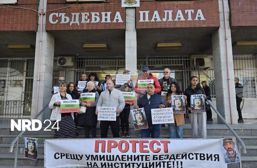 В Плевен граждани протестираха пред Съдебната палата с искане за справедливост по дело за катастрофа с две жертвиВ Плевен граждани се събраха на пореден протест пред Съдебната палата с искане за справедливост по дело за катастрофа с две жертви.Сред протестиращите беше и адвокатът на семействата на загиналите Елица Буенова.