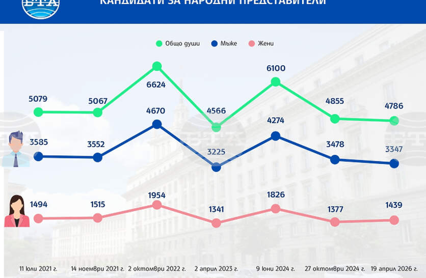 Жените кандидати за депутати на вота на 19 април са с 62 повече спрямо изборите през октомври 2024 г., но остават под 1/3 от общия брой