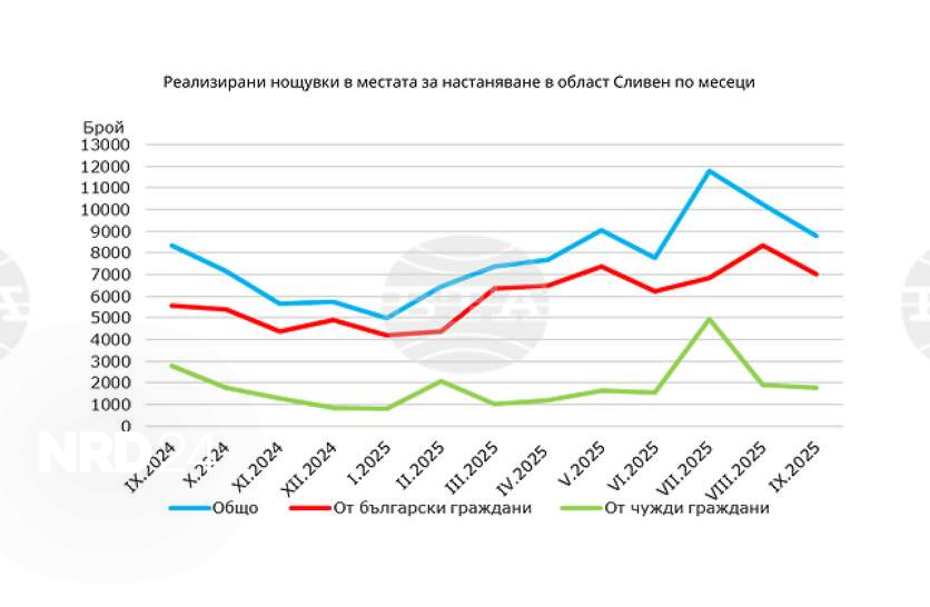 Приходите от нощувки в област Сливен през септември 2025 г. са близо 660 000 лв., отчита статистиката