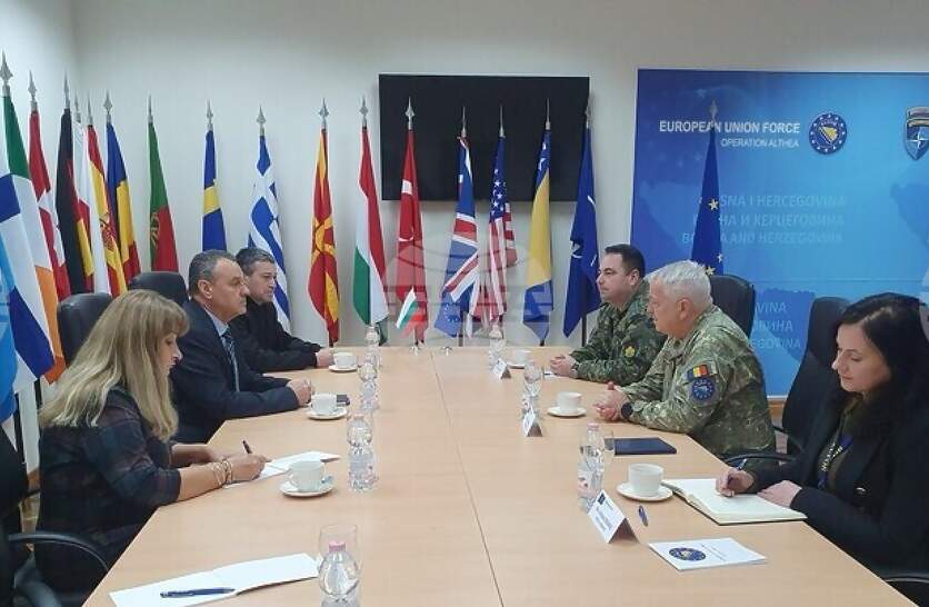 Ангажиментът на ЕС към Западните Балкани е ключов стратегически фактор за средата на сигурност, политическия напредък и икономическото развитие на региона. За България това е приоритетен въпрос от гледна точка на сигурността и просперитета на държавите от Балканския регион. Това каза заместник-министърът на отбраната Радостин Илиев на среща с командира на EUFOR генерал-майор Флорин-Мариан Барбу, съобщиха от Министерството на отбраната. Срещата се проведе в Щаба на операцията на ЕС в Босна и Херцеговина „Алтея“ в Сараево. Заместник-министърът посочи, че българските въоръжени сили ще продължават да допринасят за ефективното изпълнение на мисията на EUFOR за осигуряването на възпиращ ефект срещу всички фактори, насочени към дестабилизиране на страната. Генерал-майор Барбу благодари за приноса на страната ни към операцията на EUFOR, а от името на командването на операция „Алтея“ той даде висока оценка на българския военен контингент. По-късно Илиев проведе среща с националния командир на контингента майор Емил Флорев и с българските военнослужещи, които участват в щаба на операция „Алтея“. В хода на разговорите бяха обсъдени въпроси, свързани с изпълнението на задълженията им в състава на EUFOR. Заместник-министър Радостин Илиев благодари на военнослужещите за достойното и професионално изпълнение на задачите. Операция „Алтея“ в Босна и Херцеговина е установена на 2 декември 2004 г. с Решение на Съвета на ЕС като продължение на дейностите по поддържането на мира и сигурността в страната от ръководените от НАТО Стабилизиращи сили (SFOR), посочват от министерството. Мандатът на операцията се подновява ежегодно с резолюция на Съвета за сигурност на ООН. В операция „Алтея“ участват 20 държави-членки на ЕС и страни-партньори. Основната задача на операцията е да подпомага властите в Босна и Херцеговина за поддържането на безопасна и стабилна среда на сигурност в страната. България започва участието си в операцията на Стабилизиращите сили на НАТО (SFOR) от юни 1997 г. с инженерен контингент. През декември 2004 г. операцията се преобразува в операция „Алтея“на Европейския съюз. През годините страната ни участва в стабилизирането на Босна и Херцеговина с различни по численост и назначение формирования от Българската армия. До момента сме участвали с над 4200 военнослужещи. Миналата година държавният глава Румен Радев бе на официално посещение в Босна и Херцеговина. Там той се срещна с българските представители в операция "Алтея".