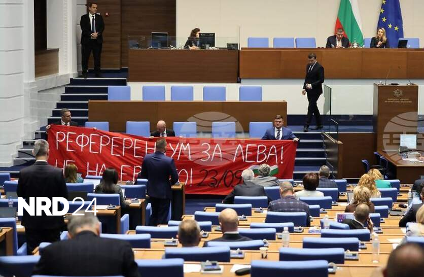С 81 гласа "за", 135 "против" и трима въздържали се, парламентът отхвърли предложението на президента Румен Радев за произвеждане на национален референдум с въпрос: „Съгласни ли сте България да въведе европейската валута „евро“ през 2026 г.?“. След гласуването председателят на Народното събрание съобщи, че решението на парламента ще бъде обнародвано в "Държавен вестник". Представител на президентската институция не дойде в пленарната зала, за да представи мотивите за предложението за национално допитване. Въвеждането на единната европейска валута може и трябва да стане с убедителен национален консенсус, с вътрешна убеденост на хората, а не с пренебрежително незачитане на тяхната воля, заявява в мотивите си държавният глава. Всеки български гражданин има право да се произнесе относно своите пари и благосъстояние, посочва той. Според президента референдумът ще бъде оздравителен за българската демокрация, той ще даде думата на хората и ще позволи да се чуят всички аргументи. По време на дебата от „Възраждане“ разпънаха транспарант пред трибуната на Народното събрание с надпис „Референдум за лева! Не на еврото“. Председателят на Народното събрание Рая Назарян направи забележка, че това не е позволено в пленарната зала. Манол Пейков от "Продължаваме промяната-Демократична България" и депутати от "Възраждане" влязоха в спор за рублата, лева и еврото.
