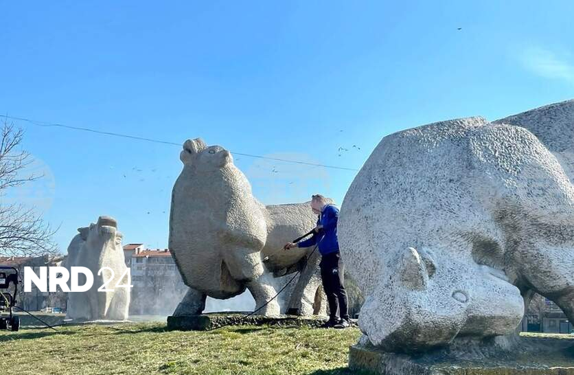 Емблематичната за Ямбол скулптурна композиция "Биковете" е преместена в центъра на новоизградено кръгово кръстовище