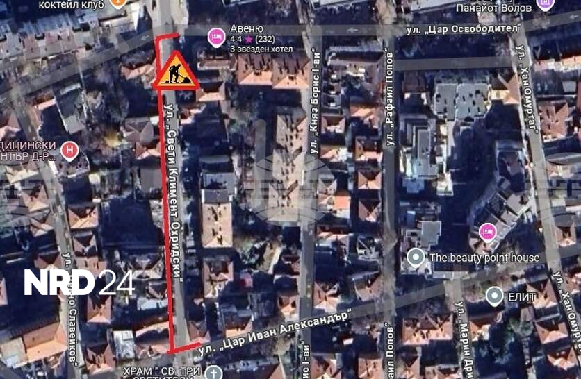 Временна организация на движението с пълно затваряне на пътното платно на ул. „Свети Климент Охридски“ от ул. „Цар Иван Александър“ до ул. „Цар Освободител“ въвежда Община Шумен на 16 януари, съобщиха от пресцентъра на местната администрация. Режимът ще бъде в сила от 9:00 ч. до 12:00 ч. на 16 януари. Въвежда се във връзка с извършване на товаро-разтоварни дейности. Обходният маршрут е по ул. „Цар Иван Александър“, ул. „Княз Борис I“ и ул. „Цар Освободител“, добавиха от пресцентъра на Община Шумен. Както предаде, на 9 януари т.г. Община Шумен въведе временна организация на движението с пълно затваряне на пътното платно на ул. „Свети Климент Охридски“ във връзка с извършване на разтоварни дейности.