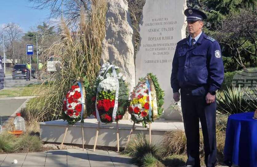 Пред паметника на Атанас Градев и Йордан Илиев в Бургас бе отбелязан Международният ден в памет на загиналите служители на реда