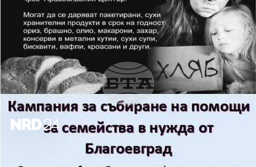 За поредна година Общинският съвет по наркотични вещества в Благоевград, съвместно с Православния информационен център, стартира кампания за събиране на дълготрайни, пакетирани храни за семейства в нужда, съобщиха от Общинския съвет по наркотични вещества. И тази година кампанията е под мотото „Приятели, наши връстници гладуват. Да спрем това!“ и ще продължи до 3 април. Желаещите могат да даряват сухи хранителни продукти в срок на годност: ориз, брашно, захар, макаронени изделия, консерви, вафли, шоколади и други. Събраните продукти ще бъдат разпределени на семейства в нужда от града и семейства на наркозависими. Продуктите се събират в Православния информационен център към Неврокопска епархия в Благоевград, който се намира на улица „Тракия“ №3 (срещу входа на Регионалното управление на образованието). Кампании за събиране на хранителни продукти и на парични средства бяха организирани в Благоевградско и преди коледните празници. По повод благотворителните кампании, организирани в Неврокопска епархия тогава, Неврокопският митрополит Серафим каза , че е радостно, че такива жестове на съпричастност не са само в дните около празника, но и целогодишно.