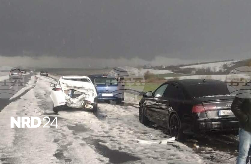 Поради обилен дъжд, придружен от градушка и намалена видимост, се въвежда временно организация на движението на етапна връзка в посока Шумен от автомагистрала "Хемус" до пътен възел "Белокопитиво". Това съобщи говорителят на Областната дирекция на МВР в Шумен Ася Йорданова. Приет е и сигнал за пътнотранспортно произшествие на около 4 км преди пътния възел. Съобщено е за три автомобила и разпилени части по пътното платно. Има съмнение за фрактура на ръка на дете на 10 години, пътник в единия автомобил. Екипи на "Пътна полиция" са на мястото на инцидента и подпомагат движението, като пренасочват водачите по алтернативен маршрут. Има още две пътнотранспортни произшествия в района, добави Йорданова. При тях няма пострадали.